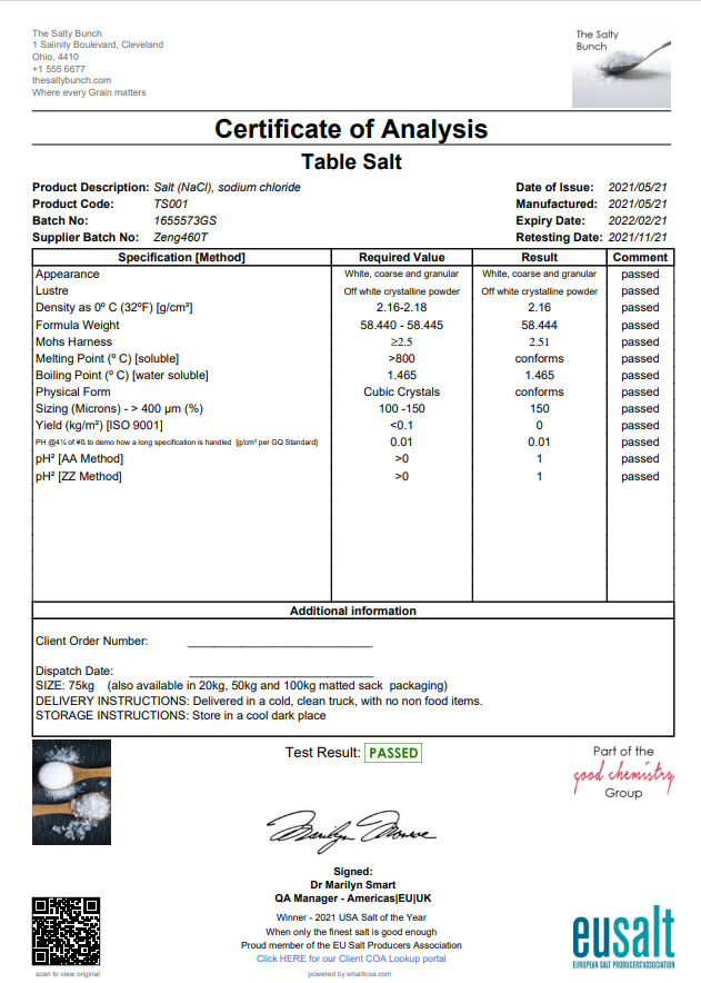 SmartCOA - will have you producing COA's like this, in seconds......
